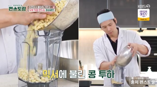 편스토랑 252회에서 이상우 배우님이 이웃으로부터 직접 기른 백태콩을 선물 받았습니다. 마음씨 좋은 이웃분께서는 밥에 넣어도 맛있고, 콩국수를 해도 맛있다면서 나눠주셨는데요. 귀한 백태콩을 어떻게 먹을까 고민하던 이상우 님께서는 평소 두부를 좋아하는 아내 김소연 배우님을 위해 손두부를 만들기로 합니다.