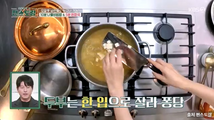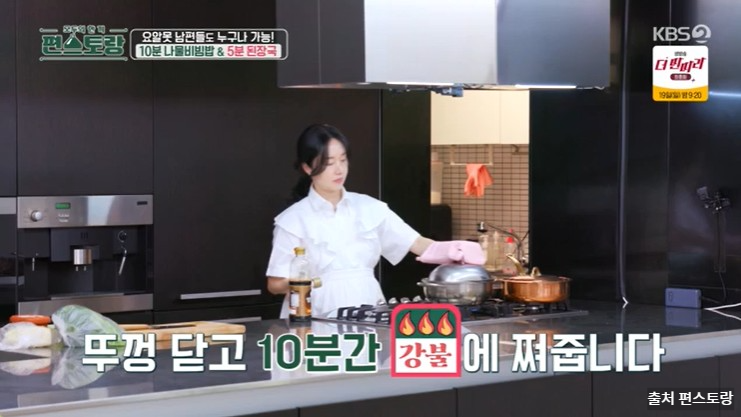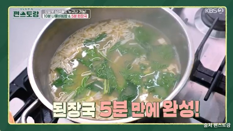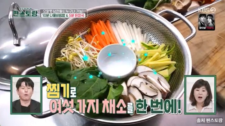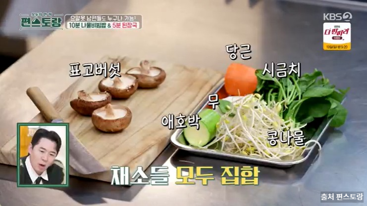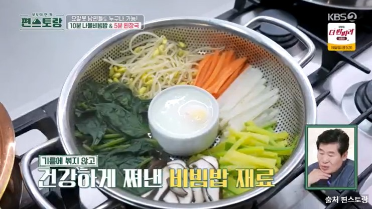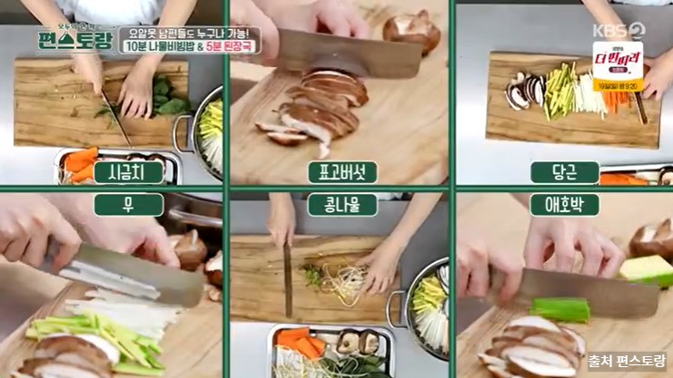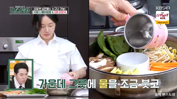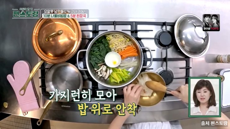 편스토랑 255회에서는 이정현 님께서 출산하러 가기 전 남편을 위한 간단 요리를 하는 모습이 나왔습니다. 먹는 건 간단하지만 재료 손질이 많아 손이 많이 가는 비빔밥을 쉽고 건강하게 만들면서, 된장국까지 함께 만드는 1석 2조 레시피!
