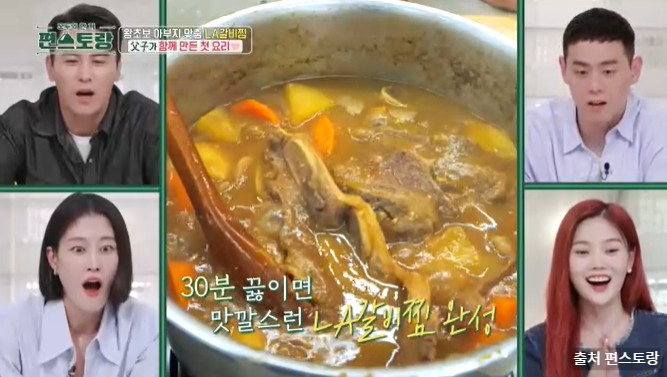 고기를 좋아하시는 아버지를 위한 아들의 레시피, 편스토랑에서 김재중 님께서 선보인 김재중 LA 갈비찜입니다. 고기 반찬만 드시는 아버지 때문에 요리하시기 힘들다는 어머니를 위해 아버지와 함께 요리하면서 다음에도 아버지가 직접 요리하실 수 있도록 간단하게 레시피를 알려드리는 모습이 인상적이었습니다.