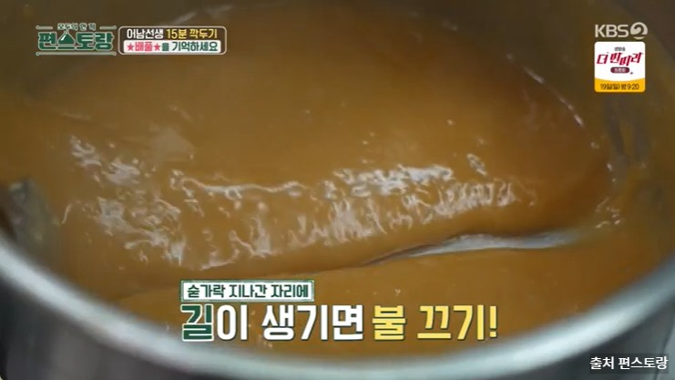 7. 냄비 바닥에 길이 생기면 불을 꺼 식힙니다.
