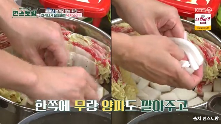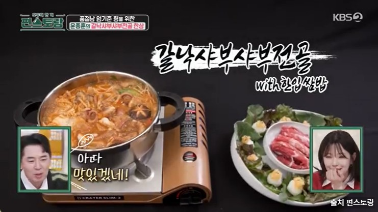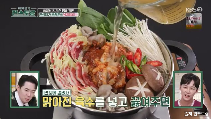 편스토랑 255회에서는 윤종훈 배우님께서 절친인 엄기준 배우님, 하도균 배우님, 봉태규 배우님을 초대해 요리를 대접하는 모습을 보였습니다. 새신랑이 된 엄기준 형님과 가장인 형님들의 기력회복을 위한 한상차림! 윤종훈 갈낙샤부샤부전골과 함께 곁들이기 좋은 한입 쌈밥 레시피 지금 확인해보겠습니다.