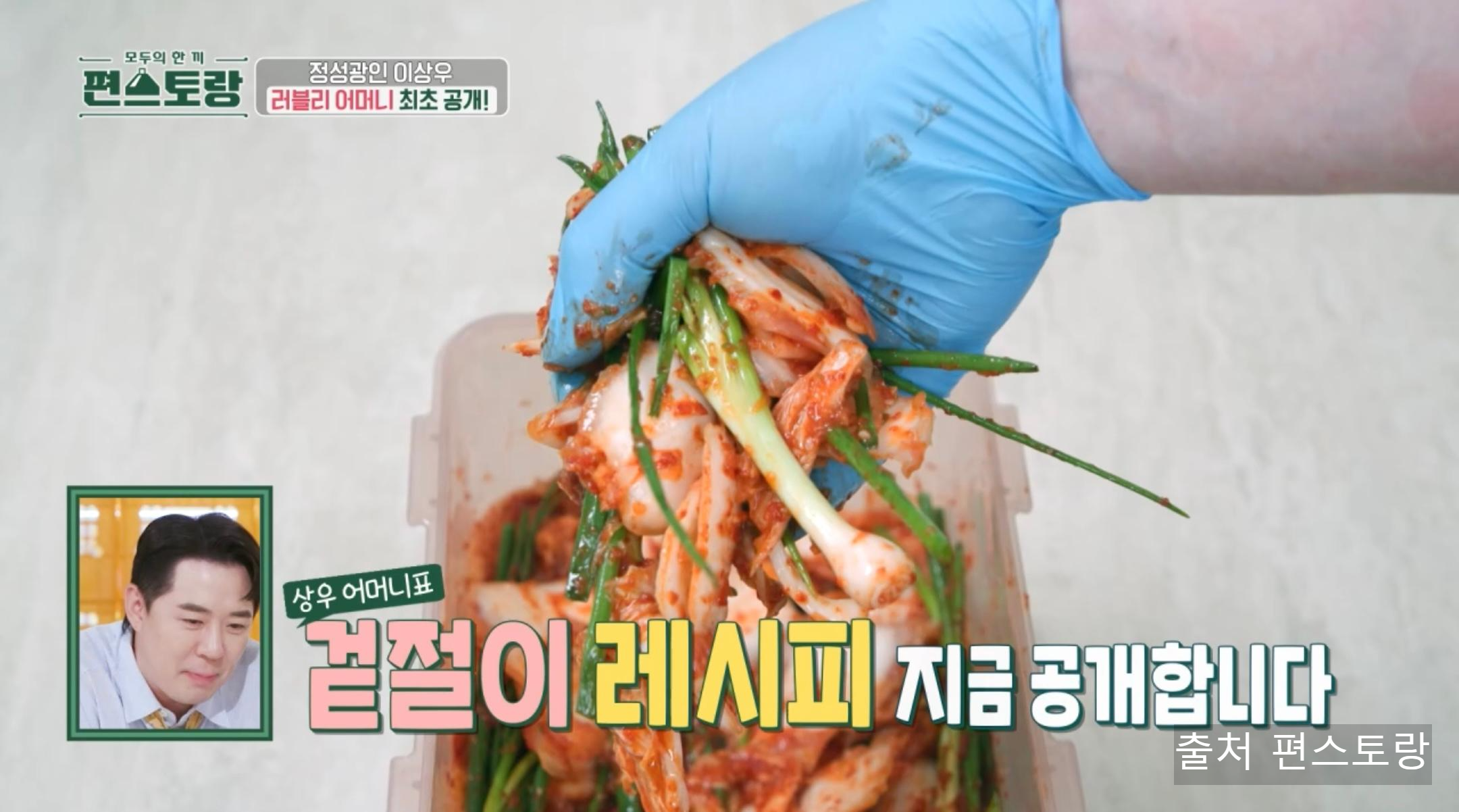 배우 이상우님은 11월 22일 방송된 편스토랑 250회에서 어머니와 함께 출연, 평소 자신과 아내가 좋아하는 엄마표 배추 겉절이를 배우는 시간을 가졌습니다. 평소 정성광인으로 불리는 이상우 배우님의 어머니 답게 어머니의 레시피 또한 정성이 가득 담겨있어 관심을 가졌습니다.