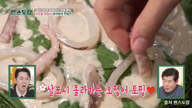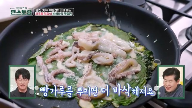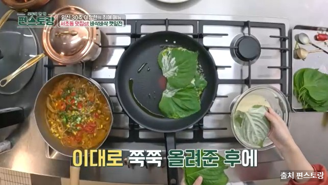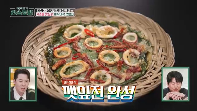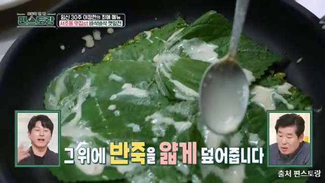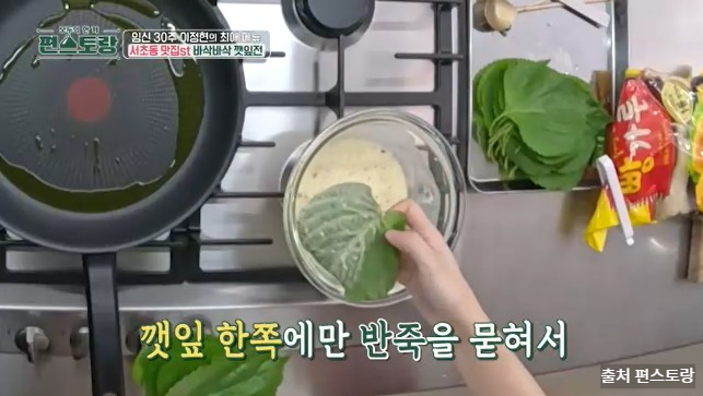 보통 깻잎전을 떠올리면 깻잎 한 장에 반죽을 넣어 계란물을 묻혀 부치는 방식을 떠올리실 텐데요, 편스토랑 253회에서는 바삭바삭하게 즐길 수 있는 색다른 이정현 깻잎전이 눈길을 끌었습니다.