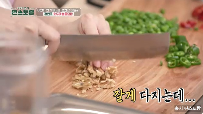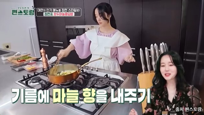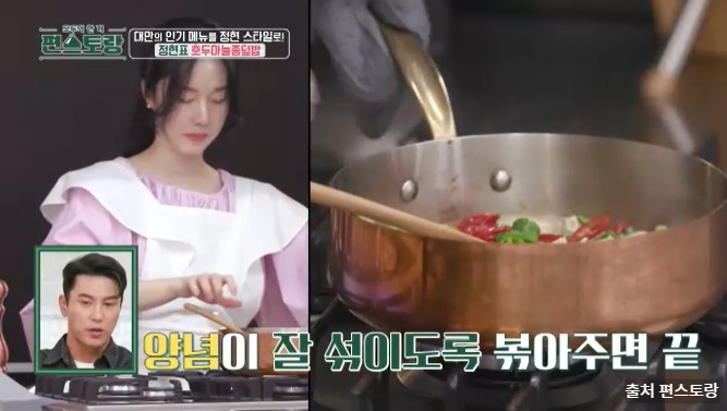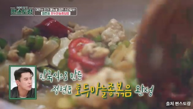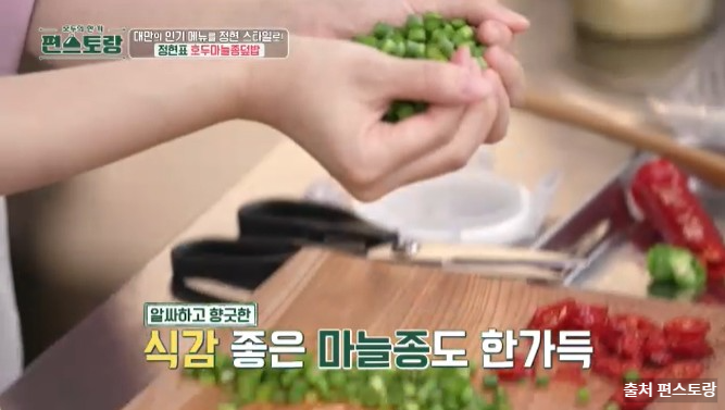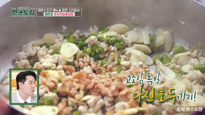 편스토랑 249회에서는 이정현 님께서 대만식 마늘종 덮밥을 본인만의 방식으로 재해석하는 모습이 나왔습니다. 이정현 호두마늘종 덮밥은 임신 후 매콤하고 알싸한 게 당기는 입맛에 맞춰 마늘과 고추, 마늘종 듬뿍 넣어 매콤하면서도 호두를 넣어 고소한 맛과 씹는 재미까지 더해주었습니다.