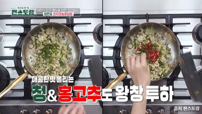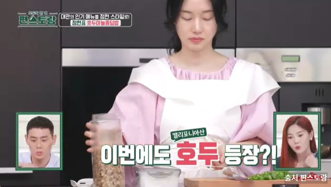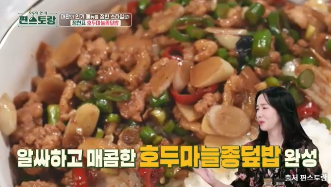 편스토랑 249회에서는 이정현 님께서 대만식 마늘종 덮밥을 본인만의 방식으로 재해석하는 모습이 나왔습니다. 이정현 호두마늘종 덮밥은 임신 후 매콤하고 알싸한 게 당기는 입맛에 맞춰 마늘과 고추, 마늘종 듬뿍 넣어 매콤하면서도 호두를 넣어 고소한 맛과 씹는 재미까지 더해주었습니다.