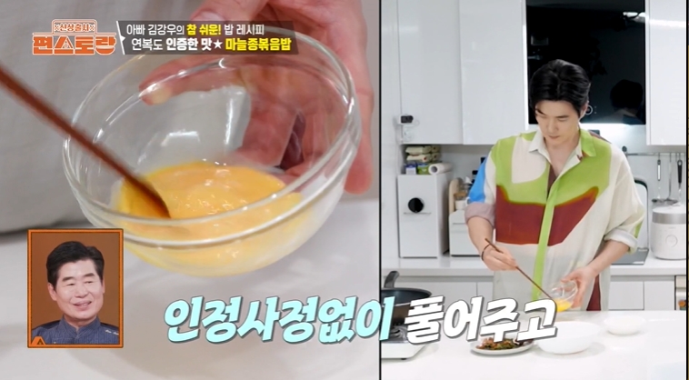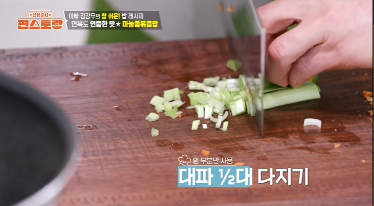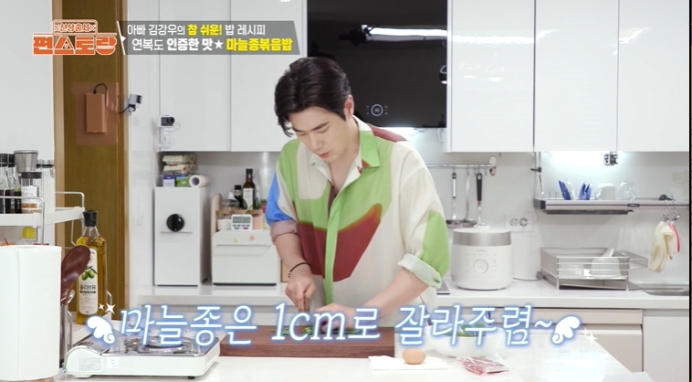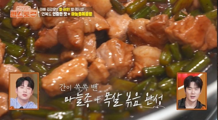 편스토랑 285회에서 배우 김강우님이 나와 아들들에게 알려주고 싶은 레시피를 소개했습니다. 그 중 첫 번째 레시피인 마늘쫑 볶음밥 만드는 방법 알아보겠습니다.