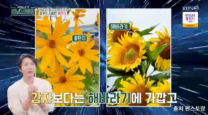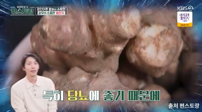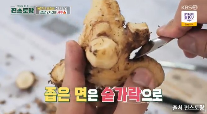한국 사람이라면 단어는 많이 들어봤지만 실제 모습은 생소한 식물, 바로 '뚱딴지'인데요, 편스토랑 252회에서 배우 이상우 님이 바로 이 뚱딴지로 생채를 만들었습니다. 보통 차로 마셔 얇게 썰어 말려진 모습은 많이들 알고 계시지만, 실제 뚱딴지의 모습을 좀 낯설게 느껴지실 겁니다. 화면 속 뚱딴지의 모습을 본 출연자들도 처음에는 알아보지 못하더라고요.