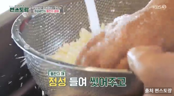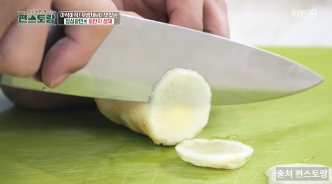 뚱딴지는 돼지감자차로만 먹어봐서 생채를 만드신다고 했을 때 의아했는데, 이연복 쉐프님께서 '식감이 아삭아삭 좋아서 무생채는 좋은 아이디어'라고 하시더라고요. 이상우 배우님께서도 무와 같은 식감이라고 표현하셨는데요, 건강에도 좋은 뚱딴지를 색다르게 즐길 수 있는 좋은 방법인 것 같습니다.