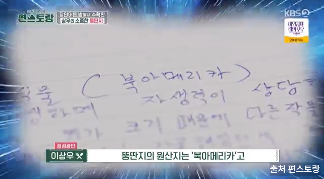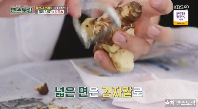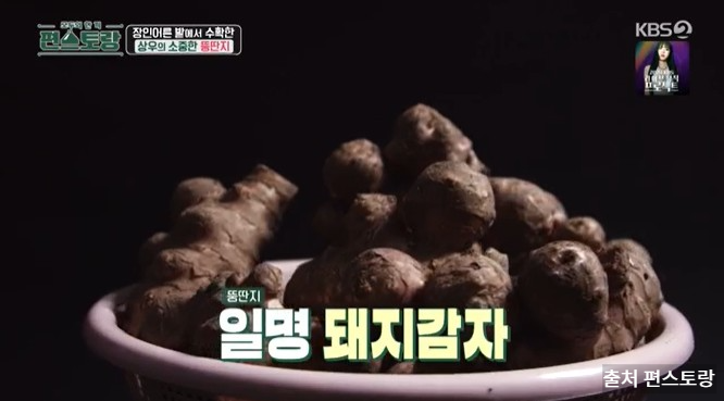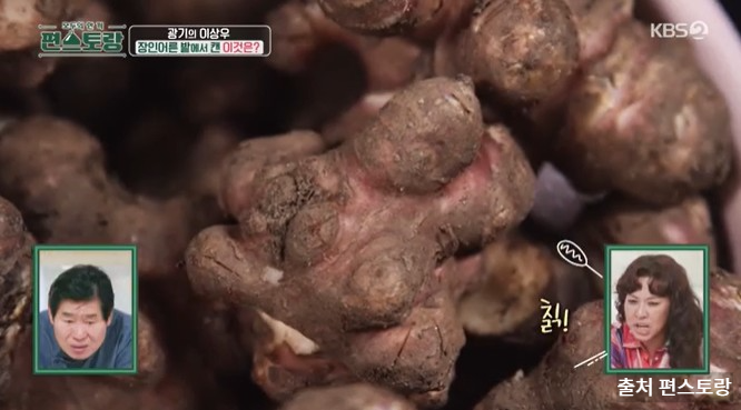 한국 사람이라면 단어는 많이 들어봤지만 실제 모습은 생소한 식물, 바로 '뚱딴지'인데요, 편스토랑 252회에서 배우 이상우 님이 바로 이 뚱딴지로 생채를 만들었습니다. 보통 차로 마셔 얇게 썰어 말려진 모습은 많이들 알고 계시지만, 실제 뚱딴지의 모습을 좀 낯설게 느껴지실 겁니다. 화면 속 뚱딴지의 모습을 본 출연자들도 처음에는 알아보지 못하더라고요.