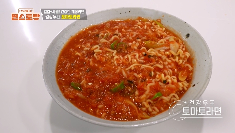 편스토랑 286회에 나온 순정쉐프 김강우 배우님의 건강한 분식 3종 세트 중, 해장에 딱이라는 토마토라면. 이전에도 토마토주스를 넣은 라면은 있었는데 직접 토마토를 갈아 넣은 라면은 처음인 것 같더라고요. 라면 국물에 토마토과육이 있는 모습이 너무 생소했는데, 맛을 본 분들이 생소하지만 너무 맛있다고 하시는 모습에 이 맛이 너무 궁금하더라고요. 김강우 토마토라면 레시피, 바로 확인해보세요.